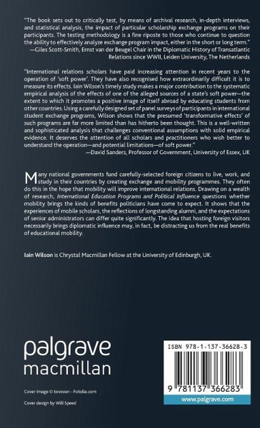 'International relations scholars have paid increasing attention in recent years to the operation of 'soft power.' They have also recognised how extraordinarily difficult it is to measure its effects. Iain Wilson's timely study makes a major contribution to the systematic empirical analysis of the effects of one of the alleged sources of a state's soft power the extent to which it promotes a positive image of itself abroad by educating students from other countries. Usinga carefully designed set of panel surveys of participants in international student exchange programs, Wilson shows that the presumed 'transformative effects' of such programs are far more limited than has hitherto been thought. This is a well-written and sophisticated analysis that challenges conventional assumptions with solid empirical evidence. It deserves the attention of all scholars and practitioners who wish better to understand the operation and potential limitations of soft power.' - David Sanders, Professor of Government, University of Essex, UK