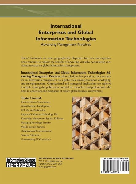 Today's businesses are more geographically dispersed than ever and organizations continue to explore the benefits of operating virtually, necessitating continued research on global information management. International Enterprises and Global Information Technologies: Advancing Management Practices offers solutions, best practices, and case studies on information management on a global scale among developed, developing, and emerging nations. Organizational and managerial implications are explored in-depth, making this publication essential for researchers and professionals who need to understand the mechanics of today's global business environment.