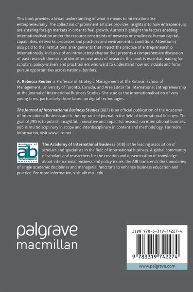 1. Research Themes about International Entrepreneurship: Tales from the JIBS Backlist and Onward Journeys; A. Rebecca Reuber.- Part I. Theoretical Foundations of International Entrepreneurship as a Scholarly Field.- 2. Toward a Theory of International New Ventures; Benjamin M. Oviatt and Patricia Phillips McDougall.- 3. Creative Tension: The Significant of Ben Oviatt's and Patricia McDougall's Article 'Toward a Theory of International New Ventures'; Erkko Autio.- Part II. Factors Enabling Internationalization Under Resource Constraints.- 4. The Survival of International New Ventures; Ram Mudambi and Shaker A. Zahra.- 5. International New Ventures: Revisiting the Influences Behind the 'Born-Global' Firm; Terence Fan and Phillip Phan.- Part III. Networks and Entrepreneurial Internationalization.- 6. The Network Dynamics of International New Ventures; Nicole E. Coviello.- 7. Explaining the Internationalization of iBusiness Firms; Keith D. Brouthers, Kim Dung Geisser and Franz Rothlauf.- Part IV. Practices and Entrepreneurial Internationalization.- 8. Small Firm Internationalisation Unveiled Through Phenomenography; Peter Lamb, Jörgen Sandberg and Peter W. Liesch.- Immigrant Remittances and the Venture Investment Environment of Developing Countries; Paul M. Vaaler.