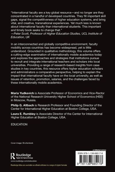 In an interconnected and globally competitive environment, faculty mobility across countries has become widespread, yet is little understood. Grounded in qualitative methodology, this volume offers a cutting-edge examination of internationally mobile academics today and explores the approaches and strategies that institutions pursue to recruit and integrate international teachers and scholars into local universities. Providing a range of research-based insights from case studies in key countries, this resource offers higher education scholars and administrators a comparative perspective, helping to explain the impact that international faculty have on the local university, as well as issues of retention, promotion, salaries, and the challenges faced by these internationally mobile academics.