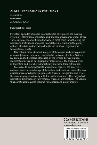 Persistent episodes of global financial crises have placed the existing system of international monetary and financial governance under stress. The resulting economic turmoil provides a focal point for rethinking the norms and institutions of global financial architecture and the policy options of public and private authorities at national, regional and transnational levels. This volume moves beyond analysis of the causes and consequences of recent financial crises and concentrates on issues of policy. Written by distinguished scholars, it focuses on the tension between global market structures and national policy imperatives. Accessible to both specialists and general readers, the analysis is coherent across a broad range of theoretical and empirical cases. Offering a series of reasoned policy responses to financial integration and crises, the volume grapples directly with the institutional and often-neglected normative dimensions of international financial architecture. The volume thus constitutes required reading for scholars and policy-makers.