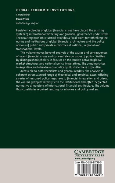 Persistent episodes of global financial crises have placed the existing system of international monetary and financial governance under stress. The resulting economic turmoil provides a focal point for rethinking the norms and institutions of global financial architecture and the policy options of public and private authorities at national, regional and transnational levels. This volume moves beyond analysis of the causes and consequences of recent financial crises and concentrates on issues of policy. Written by distinguished scholars, it focuses on the tension between global market structures and national policy imperatives. Accessible to both specialists and general readers, the analysis is coherent across a broad range of theoretical and empirical cases. Offering a series of reasoned policy responses to financial integration and crises, the volume grapples directly with the institutional and often-neglected normative dimensions of international financial architecture. The volume thus constitutes required reading for scholars and policy-makers.
