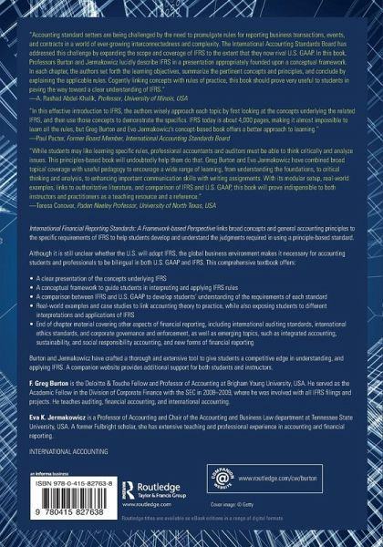 International Financial Reporting Standards: A Framework-based Perspective links broad concepts and general accounting principles to the specific requirements of IFRS to help students develop and understand the judgments required in using a principle-based standard. Although it is still unclear whether the US will adopt IFRS, the global business environment makes it necessary for accounting students and professionals to be bilingual in both US GAAP and IFRS. This comprehensive textbook offers: A clear presentation of the concepts underlying IFRS A conceptual framework to guide students in interpreting and applying IFRS rules A comparison between IFRS and US GAAP to develop students' understanding of the requirements of each standard Real world examples and case studies to link accounting theory to practice, while also exposing students to different interpretations and applications of IFRS End of chapter material covering other aspects of financial reporting, including international auditing standards, international ethics standards, and corporate governance and enforcement, as well as emerging topics, such as integrated accounting, sustainability and social responsibility accounting and new forms of financial reporting Burton & Jermakowicz have crafted a thorough and extensive tool to give students a competitive edge in understanding, and applying IFRS. A companion website provides additional support for both students and instructors.
