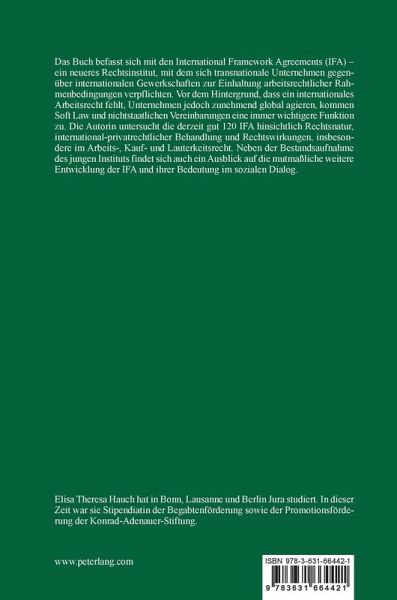 Das Buch befasst sich mit den International Framework Agreements (IFA) - ein neueres Rechtsinstitut, mit dem sich transnationale Unternehmen gegenüber internationalen Gewerkschaften zur Einhaltung arbeitsrechtlicher Rahmenbedingungen verpflichten. Vor dem Hintergrund, dass ein internationales Arbeitsrecht fehlt, Unternehmen jedoch zunehmend global agieren, kommen Soft Law und nichtstaatlichen Vereinbarungen eine immer wichtigere Funktion zu. Die Autorin untersucht die derzeit gut 120 IFA hinsichtlich Rechtsnatur, international-privatrechtlicher Behandlung und Rechtswirkungen, insbesondere im Arbeits-, Kauf- und Lauterkeitsrecht. Neben der Bestandsaufnahme des jungen Instituts findet sich auch ein Ausblick auf die mutmaßliche weitere Entwicklung der IFA und ihrer Bedeutung im sozialen Dialog.