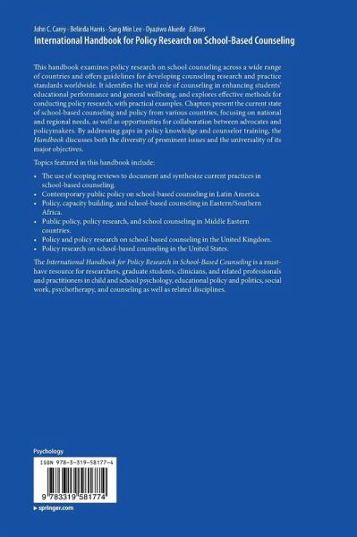 The International Handbook for Policy Research in School-Based Counseling is a must-have resource for researchers, graduate students, clinicians, and related professionals and practitioners in child and school psychology, educational policy and politics, social work, psychotherapy, and counseling as well as related disciplines.