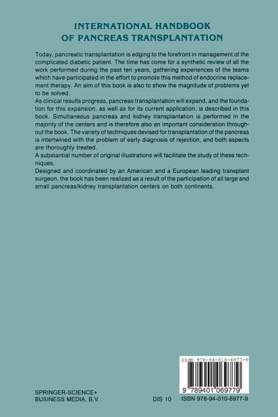 and history of pancreatic transplantation.- 1. Modern concepts of diabetes and its pathogenesis.- 2. Experimental pancreas transplantation: a survey of relevant issues.- Commentary by L.H. Toledo-Pereyra.- 3. Indication of combined pancreas and kidney transplantation.- 4. Indication for pancreas transplantation alone.- 5. Surgical techniques and complications.- Commentary by D.E.R. Sutherland.- Commentary by R. Schlumpf and F. Largiadèr.- 6. Organ preservation.- Commentary by P.J. Garvin.- Commentary by F.O. Belzer and J.H. Southard.- 7. Pre-, per- and post-operative care of the pancreas transplantation recipient.- 8. Immunosuppression for pancreas transplant recipients.- Commentary by D.E.R. Sutherland.- 9. The diagnosis and treatment of pancreatic rejection.- Commentary by D.E.R. Sutherland.- 10. Pathology of pancreas grafts.- 11. Endocrine function of the pancreatic graft.- 12. Exocrine function of the pancreas graft.- 13. Effect of pancreas transplantation on secondary complications of diabetes.- 14. Pancreas transplant registry.- 15. Pancreas transplant experience of individual institutions University of Michigan Medical School, Ann Arbor, Michigan, U.S.A..- University of Barcelona, Department of Surgery, Barcelona, Spain.- University of Birmingham, Queen Elisabeth Hospital, Edgbaston, Birmingham, U.K..- University of Louvain Medical School, Brussels, Belgium.- University of Cambridge Clinical School, Addenbrooke's Hospital, Cambridge, U.K..- University of Cincinnati Medical Center, Cincinnati, Ohio, U.S.A..- Mount Carmel Mercy Hospital, Detroit, Michigan, U.S.A..- University of Genoa, Transplant Unit, Genoa, Italy.- Sahlgren's Hospital, Göteborg, Sweden.- University Hospital, Innsbruck, Austria.- University of Iowa College of Medicine, Iowa City, Iowa,U.S.A..- Hôpital Edouard Herriot, University of Lyon I, Lyon, France.- University of Minnesota, Minneapolis, Minnesota, U.S.A..- University of Munich, Klinikum Grosshadern, Munich, F.R.G..- National Hospital, Oslo, Norway.- University of Pittsburgh, Pittsburgh, Pennsylvania, U.S.A..- Institute for Clinical and Experimental Medicine, Prague, Czechoslovakia.- Saint Louis University School of Medicine, Saint Louis, Missouri, U.S.A..- Huddinge Hospital, Karolinska Institute, Stockholm, Sweden.- University Hospital Zurich, Zurich, Switzerland.- 16. Islet transplantation: a review of the objective, the concepts, the problems, the progress and the future..- 17. The implantable artificial pancreas.- 18. Perspectives in pancreatic transplantation.- Index of subjects.