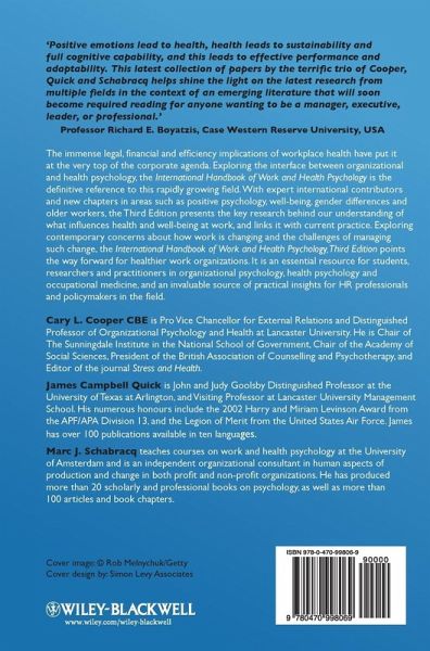 Now in its third edition, this authoritative handbook offers acomprehensive and up-to-date survey of work and health psychology. Updated edition of a highly successful handbook Focuses on the applied aspects of work and healthpsychology New chapters cover emerging themes in this rapidlygrowing field Prestigious team of editors and contributors