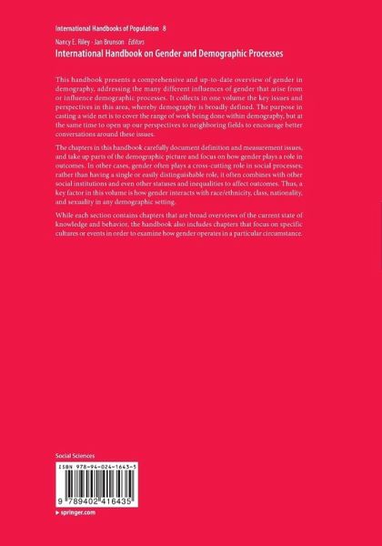 This handbook presents a comprehensive and up-to-date overview of gender in demography, addressing the many different influences of gender that arise from or influence demographic processes. It collects in one volume the key issues and perspectives in this area, whereby demography is broadly defined. The purpose in casting a wide net is to cover the range of work being done within demography, but at the same time to open up our perspectives to neighboring fields to encourage better conversations around these issues.