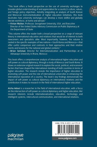 This book offers a comprehensive analysis of international higher education and soft power as cultural diplomacy, through a study of Morocco and South Korea. It draws on extensive original research to explore the social, political, and economic factors that have shaped the international standing of both countries in terms of higher education. The research reveals the importance of higher education in promoting soft power and the role of international universities in enhancing the international reputation of a country. The book's key findings demonstrate the impact of soft power as cultural diplomacy on international relations and the contribution it makes to research in the field of international higher education.