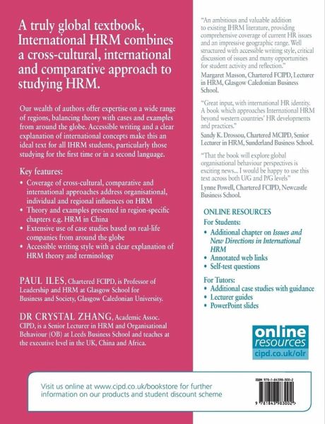 International Human Resource Management offers coverage of international, comparative and cross-cultural HRM. Ideal for students taking this subject for the first time or studying in their second language, this title balances theory with cases and examples from across the globe. Its wealth of contributors providing expert knowledge of specific countries and regions makes this a truly international text. It combines three approaches of study: International - theme focused (resourcing, talent in an international context), Comparative - country focused (India and HRM, China and HRM) and Cross-cultural - linking HR to wider organisation (leadership in international context).