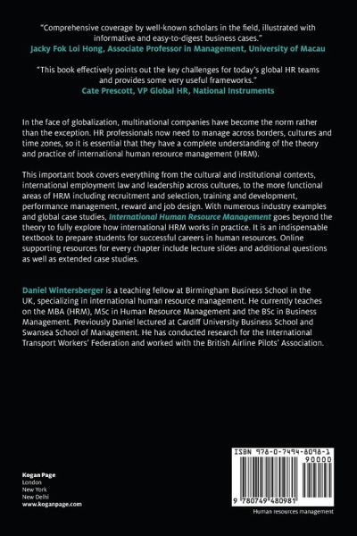 In the face of globalization, multinational companies have become the norm, rather than the exception. HR professionals now need to manage across borders, cultures and time zones, meaning that a complete understanding of the theory and practice of International Human Resource Management (HRM) is essential. International Human Resource Management is a concise introduction for all students studying International HRM at the Masters level. It covers everything from the cultural and institutional contexts, international employment law and the role of International Framework Agreements to recruitment and selection, training and development, performance management, reward and benefits, job design and other functional areas of International HRM. With numerous industry examples and global case studies from companies such as Telefonica, Unilever and Volkswagen, International Human Resource Management goes beyond the theory to fully explore how International HRM works in practice. It is an indispensable textbook to prepare students for successful careers in human resources. Online supporting resources include additional case studies, lecture slides for every chapter, self-test exercises for students, discussion questions and further reading.