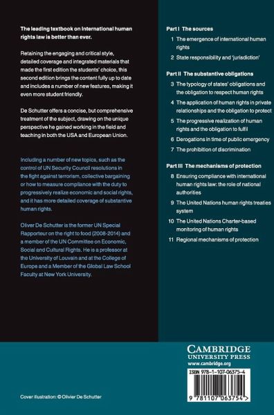 The leading textbook on international human rights law is now better than ever. The content has been fully updated and now provides more detailed coverage of substantive human rights, along with new sections on the war on terror and on the progressive realization of economic and social rights, making this the most comprehensive book in the field. It has a new, more student-friendly text design and has retained the features which made the first edition so engaging and accessible, including the concise and critical style, and questions and case studies within each chapter, as well as suggestions for further reading. Written by De Schutter, whose extensive experience working in the field and teaching the subject in both the US and EU gives him a unique perspective and valuable insight into the requirements of lecturers and students. This is an essential tool for all students of international human rights law.