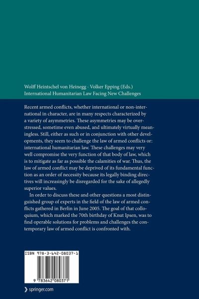 Aus den Rezensionen: "2005 wurde in Berlin ein Symposium zu Ehren des Völkerrechtlers Knut Ipsen veranstaltet ... Das vorliegende Werk präsentiert die anlässlich dieser Veranstaltung gehaltenen Referate. Nach einer Einführung von Volker Epping ... setzen sich Experten mit den unterschiedlichen Auffassungen hinsichtlich Methoden und Mittel der Kriegsführung auseinander. ... Den Abschluss bildet ein Überblick über Möglichkeiten der Durchsetzung humanitätsrechtlicher Prinzipien. Das vorliegende Werk gibt einen guten Einblick in die komplexen Vorgänge im Bereich des Kriegs- und Humanitätsrechts." (Schöpfer, in: Newsletter Menschenrechte, 2007, Issue 4, S. 229)