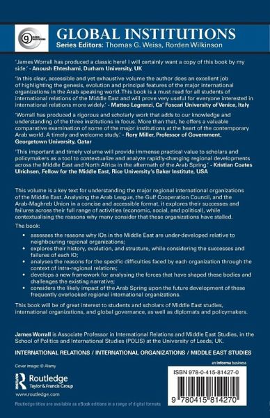 'Worrall has produced a rigorous and scholarly work that adds to our knowledge and understanding of the three institutions in focus - the Gulf Cooperation Council, the Arab League and the Arab Maghreb Union. More than that, he offers a valuable comparative examination of some of the major institutions at the heart of the contemporary Arab world. A timely and welcome study.' - Rory Miller, Professor of Government, Georgetown University, Qatar