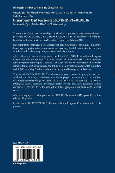 This volume of Advances in Intelligent and Soft Computing contains accepted papers presented at SOCO 2016, CISIS 2016 and ICEUTE 2016, all conferences held in the beautiful and historic city of San Sebastián (Spain), in October 2016.