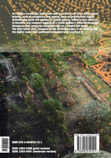 Art History is centrally concerned with a vast array of three-dimensional objects, such as sculptures, and spaces, such as architecture. Digital technologies allow the creation of virtual spaces, which in turn allow us to simulate and compare aspects of a visual culture's three-dimensional timespace that cannot be communicated as a single, still image. The third issue, thus, focusses on the third dimension in Art History, and the digital realm that continues to mediate and transform it.