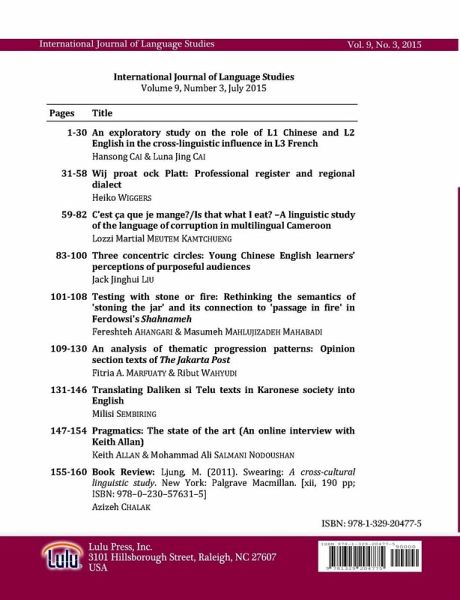 (1-30) by Hansong CAI & Luna Jing CAI; (31-58) by Heiko WIGGERS; (59-82) by Lozzi Martial MEUTEM KAMTCHUENG; (83-100) by Jack Jinghui LIU; (101-108) by Fereshteh AHANGARI & Masumeh MAHLUJIZADEH MAHABADI; (109-130) by Fitria A. MARFUATY & Ribut WAHYUDI; (131-146) by Milisi SEMBIRING; (147-154) by Keith ALLAN & Mohammad Ali SALMANI NODOUSHAN; (155-160) by Azizeh CHALAK.