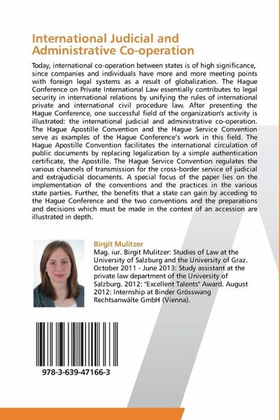 Today, international co-operation between states is of high significance, since companies and individuals have more and more meeting points with foreign legal systems as a result of globalization. The Hague Conference on Private International Law essentially contributes to legal security in international relations by unifying the rules of international private and international civil procedure law. After presenting the Hague Conference, one successful field of the organization's activity is illustrated: the international judicial and administrative co-operation. The Hague Apostille Convention and the Hague Service Convention serve as examples of the Hague Conference's work in this field. The Hague Apostille Convention facilitates the international circulation of public documents by replacing legalization by a simple authentication certificate, the Apostille. The Hague Service Convention regulates the various channels of transmission for the cross-border service of judicial and extrajudicial documents. A special focus of the paper lies on the implementation of the conventions and the practices in the various state parties. Further, the benefits that a state can gain by acceding to the Hague Conference and the two conventions and the preparations and decisions which must be made in the context of an accession are illustrated in depth.