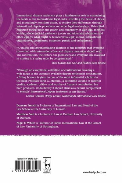 International dispute settlement plays a fundamental role in maintaining the fabric of the international legal order, reflecting the desire of States, and increasingly non-State actors, to resolve their differences through international dispute procedures and other legal mechanisms. This edited collection focuses upon the growth and complexity of such legal methods, which includes judicial settlement (courts and tribunals), arbitration and other legal (or what might be termed 'extra-legal') means (international organisations, committees, inspection panels, and ombudsmen). In this important collection, such mechanisms are compared and evaluated side-by-side to provide, in one volume, a detailed and analytical account of the current framework. Ranging from key conceptual issues of proliferation of legal mechanisms and the associated risks of fragmentation through to innovations in dispute settlement mechanisms in many topical areas of international law, including international trade law, collective security law and regional law, this collection, written by leading international lawyers, provides a major study in the ongoing trends and emerging problems in this crucial area of international law. This edited collection is published to mark the retirement of Professor John Merrills, Emeritus Professor of International Law, University of Sheffield, who has written widely on international law and human rights law, but is probably best known for his work on the settlement of international disputes, evidenced by the enduring appeal of his leading text International Dispute Settlement, now in its fourth edition.
