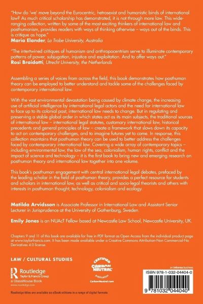 This book's posthuman engagement with central international legal debates, prefaced by the leading scholar in the field of posthuman theory, provides a perfect resource for students and scholars in international law, as well as critical and socio-legal theorists and others with interests in posthuman thought, technology, colonialism and ecology.