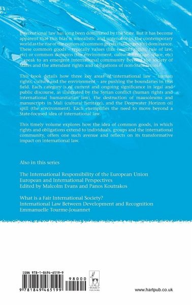 International law has long been dominated by the State. But it has become apparent that this bias is unrealistic and untenable in the contemporary world as the rise of the notion of common goods challenges this dominance. These common goods - typically values (like human rights, rule of law, etc) or common domains (the environment, cultural heritage, space, etc) - speak to an emergent international community beyond the society of States and the attendant rights and obligations of non-State actors. This book details how three key areas of international law - human rights, culture and the environment - are pushing the boundaries in this field. Each category is of current and ongoing significance in legal and public discourse, as illustrated by the Syrian conflict (human rights and international humanitarian law), the destruction of mausoleums and manuscripts in Mali (cultural heritage), and the Deepwater Horizon oil spill (the environment). Each exemplifies the need to move beyond a State-focused idea of international law. This timely volume explores how the idea of common goods, in which rights and obligations extend to individuals, groups and the international community, offers one such avenue and reflects on its transformative impact on international law.