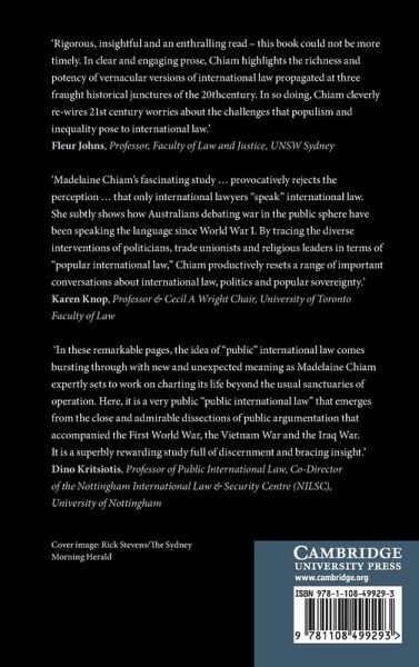 Public debates in the language of international law have occurred across the 20th and 21st centuries and have produced a popular form of international law that matters for international practice. This book analyses the people who used international law and how they used it in debates over Australia's participation in the 2003 Iraq War, the Vietnam War and the First World War. It examines texts such as newspapers, parliamentary debates, public protests and other expressions of public opinion. It argues that these interventions produced a form of international law that shares a vocabulary and grammar with the expert forms of that language and distinct competences in order to be persuasive. This longer history also illustrates a move from the use of international legal language as part of collective justifications to the use of international law as an autonomous justification for state action.