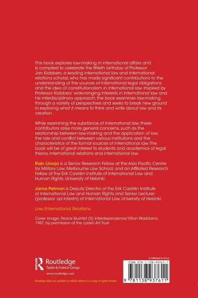 This book explores law-making in international affairs and is compiled to celebrate the 50th birthday of Professor Jan Klabbers, a leading international law and international relations scholar who has made significant contributions to the understanding of the sources of international legal obligations and the idea of constitutionalism in international law. Inspired by Professor Klabbers' wide-ranging interests in international law and his interdisciplinary approach, the book examines law-making through a variety of perspectives and seeks to breaks new ground in exploring what it means to think and write about law and its creation. While examining the substance of international law, these contributors raise more general concerns, such as the relationship between law-making and the application of law, the role and conflict between various institutions, and the characteristics of the formal sources of international law. The book will be of great interest to students and academics of legal theory, international relations, and international law.