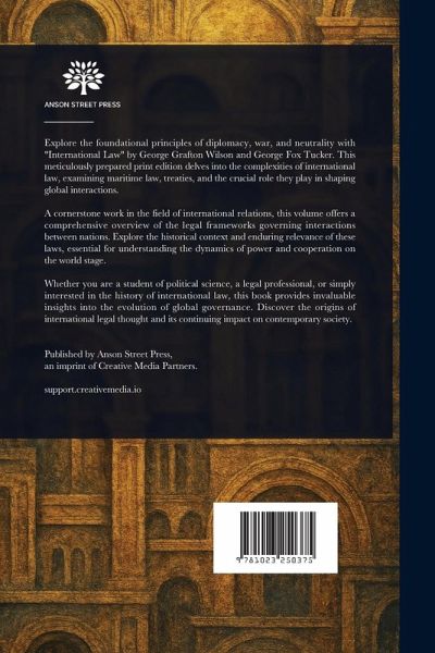 Explore the foundational principles of diplomacy, war, and neutrality with "International Law" by George Grafton Wilson and George Fox Tucker. This meticulously prepared print edition delves into the complexities of international law, examining maritime law, treaties, and the crucial role they play in shaping global interactions. A cornerstone work in the field of international relations, this volume offers a comprehensive overview of the legal frameworks governing interactions between nations. Explore the historical context and enduring relevance of these laws, essential for understanding the dynamics of power and cooperation on the world stage. Whether you are a student of political science, a legal professional, or simply interested in the history of international law, this book provides invaluable insights into the evolution of global governance. Discover the origins of international legal thought and its continuing impact on contemporary society. This work has been selected by scholars as being culturally important, and is part of the knowledge base of civilization as we know it. This work is in the public domain in the United States of America, and possibly other nations. Within the United States, you may freely copy and distribute this work, as no entity (individual or corporate) has a copyright on the body of the work. Scholars believe, and we concur, that this work is important enough to be preserved, reproduced, and made generally available to the public. We appreciate your support of the preservation process, and thank you for being an important part of keeping this knowledge alive and relevant.
