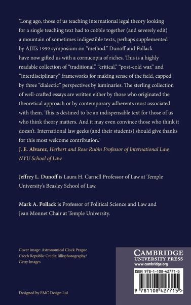 Part I. Introduction: Setting the stage: 1. International legal theory foundations and frontiers Jeffrey L. Dunoff and Mark A. Pollack; Part II. Traditional approaches to international law: 2. Natural law current contributions of the natural law tradition to international law Andreas Follesdal; 3. International legal positivism Jean d'Aspremont; 4. Legal realism and international law Gregory Shaffer; 5. Transnational legal process and the "new" new haven school Harold Hongju Koh; Part III. Critical approaches to international law: 6. Critical international legal theory Fleur Johns; 7. The agenda of third world approaches to international law James Gathii; 8. Feminist approaches to international law Karen Engle, Vasuki Nesiah, and Dianne Otto; Part IV. Post-cold war approaches to international law: 9. Global administrative law Lorenzo Casini; 10. Constitutionalism as theory Jan Klabbers; 11. Global legal pluralism Nico Krisch; Part V. Interdisciplinary approaches to international law: 12. Rationalist and behavior list approaches to international law Anne van Aaken; 13. The sociological perspective on international law Moshe Hirsch; 14. The practice of interpretation in international law strategies of critique Ingo Venzke; Part VI. International law: dialogue and dialectic: 15. Reflections on international legal theory and practice a conversation with Georges Abi-Saab Georges Abi-Saab; 16. Theory and practice two sides of the same coin Laurence Boisson de Chazournes; 17. International legal theory a dialogic conclusion Joseph H. H. Weiler.