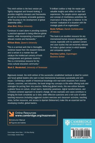 Rigorously revised, the ninth edition of this successful, established textbook is ideal for current and future global leaders who want to lead international businesses sustainably and with impact. Combining a wealth of theoretical knowledge with real-world situations from diverse cultures, countries and industries, the book brings key concepts to life, while offering tools and strategies for putting them into practice. Reflecting global trends, this new edition features a greater focus on culture, virtual teams, leadership paradoxes, digital transformations, and a mindset-centered approach to dynamic change. All-new examples and cases contribute to bringing the book completely up to date, while reflection questions and a rich suite of online teaching resources (including suggested student exercises and classroom activities, teaching notes, further resources, and access to Aperian Globesmart), make this an essential tool for developing mindful, global leaders.