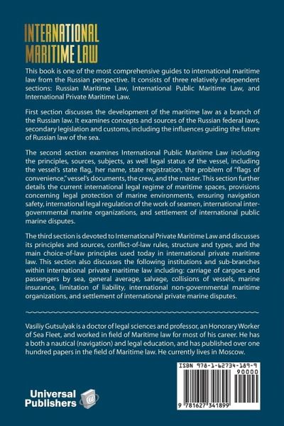 This book is one of the most comprehensive guides to international maritime law from the Russian perspective. It consists of three relatively independent sections: Russian Maritime Law, International Public Maritime Law, and International Private Maritime Law. First section discusses the development of the maritime law as a branch of the Russian law. It examines concepts and sources of the Russian federal laws, secondary legislation and customs, including the influences guiding the future of Russian law of the sea. . The second section examines International Public Maritime Law including the principles, sources, subjects, as well legal status of the vessel, including the vessel's state flag, her name, state registration, the problem of "flags of convenience," vessel's documents, the crew, and the master. This section further details the current international legal regime of maritime spaces, provisions concerning legal protection of marine environments, ensuring navigation safety, international legal regulation of the work of seamen, international inter-governmental marine organizations, and settlement of international public marine disputes. The third section is devoted to International Private Maritime Law and discusses its principles and sources, conflict-of-law rules, structure and types, and the main choice-of-law principles used today in international private maritime law. This section also discusses the following institutions and sub-branches within international private maritime law including: carriage of cargoes and passengers by sea, general average, salvage, collisions of vessels, marine insurance, limitation of liability, international non-governmental maritime organizations, and settlement of international private marine disputes.