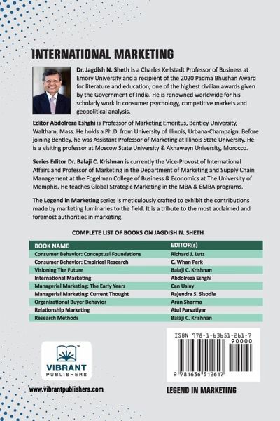 Legend in Marketing: International Marketing By Jagdish N. Sheth Explore the global landscape of marketing with International Marketing, a book in the Legend in Marketing series by Dr. Jagdish N. Sheth. This book brings together Dr. Sheth's profound insights and research on the complexities of marketing across international borders, offering a comprehensive understanding of how companies succeed in diverse, global markets. With decades of experience in studying global consumer behavior, Dr. Sheth examines the challenges and opportunities that arise when businesses operate on a global scale.…mehr