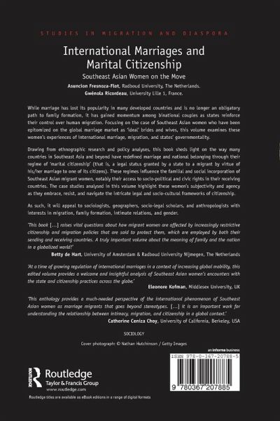 While marriage has lost its popularity in many developed countries and is no longer an obligatory path to family formation, it has gained momentum among binational couples as states reinforce their control over human migration. Focusing on the case of Southeast Asian women who have been epitomized on the global marriage market as 'ideal' brides and wives, this volume examines these women's experiences of international marriage, migration, and states' governmentality. Drawing from ethnographic research and policy analyses, this book sheds light on the way many countries in Southeast Asia and beyond have redefined marriage and national belonging through their regime of 'marital citizenship' (that is, a legal status granted by a state to a migrant by virtue of his/her marriage to one of its citizens). These regimes influence the familial and social incorporation of Southeast Asian migrant women, notably their access to socio-political and civic rights in their receiving countries. The case studies analysed in this volume highlight these women's subjectivity and agency as they embrace, resist, and navigate the intricate legal and socio-cultural frameworks of citizenship. As such, it will appeal to sociologists, geographers, socio-legal scholars, and anthropologists with interests in migration, family formation, intimate relations, and gender.