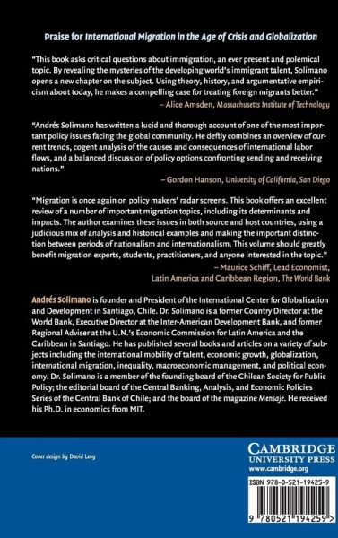 The international mobility of people and elites is a main feature of the global economy of today. Immigration augments the labor force in receiving countries and provides many of the bodies and minds that are essential to any vibrant economy. This book is based on a blend of theory, varied country examples, and rich historical material ranging from the mid-nineteenth century to the early twenty-first century. It discusses the conceptual underpinnings of the push and pull factors of current migration waves and their impacts for development on the source and receiving countries. The analysis reviews the historical context under which various migration experiences have taken place - both in periods of internationalism and nationalism - in order to contribute to debates on the desirability of and tensions and costs involved in the current process of international migration.