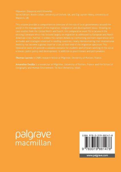 This volume provides a comprehensive overview of the role of local governments around the world in the management of the migration, integration and development nexus. Drawing on case studies from the Global North and South, this comparative work fills a lacuna in the existing literature which has focused largely on migration as addressed by European and North American cities. Further, it widens the current debate by confronting northern experiences with attitudes and strategies observed in sending countries; clearly demonstrating that international mobility has become a global issue for cities at both end of the migration spectrum. This innovative work will provide a valuable resource for students and scholars working in the social sciences, public policy and development; in addition to practitioners and policymakers.