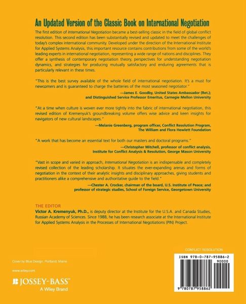 The first edition of International Negotiation became a best-selling classic in the field of global conflict resolution. This second edition has been substantially revised and updated to meet the challenges of today s complex international community. Developed under the direction of the International Institute for Applied Systems Analysis, this important resource contains contributions from some of the world s leading experts in international negotiation, representing a wide range of nations and disciplines. They offer a synthesis of contemporary negotiation theory, perspectives for understanding negotiation dynamics, and strategies for producing mutually satisfactory and enduring agreements that is particularly relevant in these times.