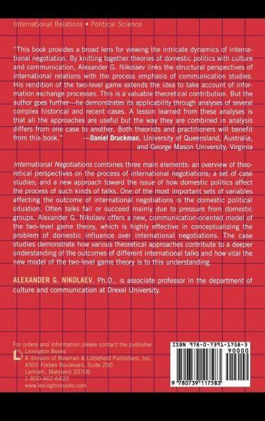 International Negotiations combines three main elements: a comprehensive and detailed overview of all the main theoretical perspectives on the process of international negotiations; a set of case-studies; and a section offering a new communication-oriented approach toward the issue of how domestic politics affect the process of international negotiations.