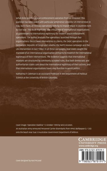 What distinguishes a peace enforcement operation from an invasion? This question has been asked with particular vehemence since the US intervention in Iraq, but it faces all military operations seeking to impose peace in countries torn by civil war. This book highlights the critical role of international organisations (IOs) as gatekeepers to international legitimacy for modern peace enforcement operations. The author analyses five operations launched through four IOs: the ECOWAS intervention in Liberia, the SADC operations in the Democratic Republic of Congo and Lesotho, the NATO Kosovo campaign and the UN intervention in East Timor. In all these campaigns, lead states sought IO mandates primarily to establish the international legitimacy of their interventions. The evidence suggests that international relations are structured by commonly accepted rules, that both democratic and authoritarian states care about the international legitimacy of their actions, and that IOs have a key function in world politics.