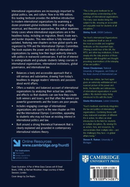 Preface Acknowledgments 1. Introduction to international organizations 2. Theory, methods, and international organizations 3. The United Nations I: law and administration 4. The United Nations II: international peace and security 5. The World Trade Organization 6. The International Monetary Fund and the World Bank 7. The International Labor Organization 8. The World Health Organization 9. Refugees and international migration: UNHCR, the IOM, and the 1951 Convention 10. The International Court of Justice 11. The International Criminal Court 12. The European Union and regional organizations 13. FIFA, the IOC, and the Court of Arbitration for Sport Index.
