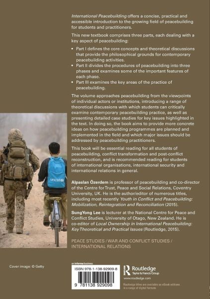 International Peacebuilding offers a concise, practical and accessible introduction to the growing field of peacebuilding for students and practitioners. This new textbook comprises three parts, each dealing with a key aspect of peacebuilding: Part I defines the core concepts and theoretical discussions that provide the philosophical grounds for contemporary peacebuilding activities. Part II divides the procedures of peacebuilding into three phases and examines some of the important features of each phase. Part III examines the key areas of the practice of peacebuilding. The volume approaches peacebuilding from the viewpoints of individual actors or institutions, introducing a range of theoretical discussions with which students can critically examine contemporary peacebuilding practice, as well as presenting detailed case studies for key issues highlighted in the text. In doing so, the book aims to provide more concrete ideas on how peacebuilding programmes are planned and implemented in the field and which major issues should be addressed by peacebuilding practitioners. This book will be essential reading for all students of peacebuilding, conflict transformation and post-conflict reconstruction, and recommended reading for students of international organisations, international security and IR in general.