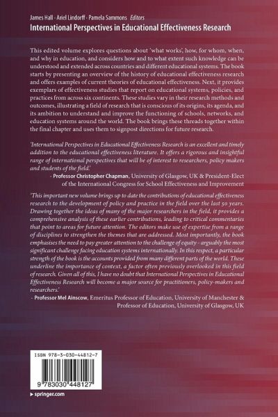 'This important new volume brings up to date the contributions of educational effectiveness research to the development of policy and practice in the field over the last 50 years. Drawing together the ideas of many of the major researchers in the field, it provides a comprehensive analysis of these earlier contributions, leading to critical commentaries that point to areas for future attention. The editors make use of expertise from a range of disciplines to strengthen the themes that are addressed. Most importantly, the book emphasises the need to pay greater attention to the challenge of equity - arguably the most significant challenge facing education systems internationally. In this respect, a particular strength of the book is the accounts provided from many different parts of the world. These underline the importance of context, a factor often previously overlooked in this field of research. Given all of this, I have no doubt that International Perspectives in Educational Effectiveness Research will become a major source for practitioners, policy-makers and researchers.' - Professor Mel Ainscow, Emeritus Professor of Education, University of Manchester & Professor of Education, University of Glasgow, UK