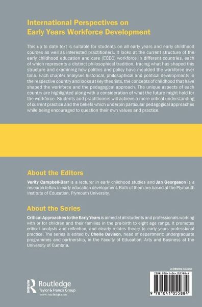 1. Introduction: the early childhood education and care workforce in a global context 2. Australia 3. Hungary 4. Italy 5. Japan 6. Russia 7. Germany 8. The Philippines 9. Sweden 10. The UK 11. Conclusion: Mapping Philosophies and Traditions in Workforce Development Around the World