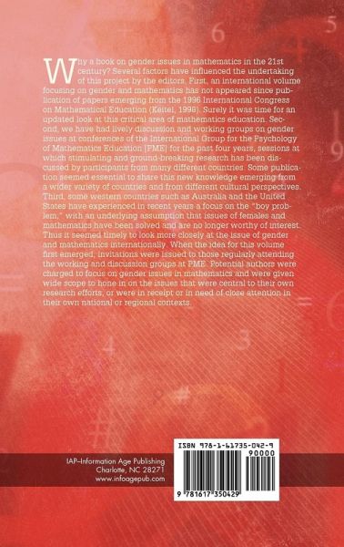 A Volume in International Perspectives on Mathematics Education - Cognition, Equity & Society Series Editor Bharath Sriraman, The University of Montana and Lyn English, Queensland University of Technology Why a book on gender issues in mathematics in the 21st century? Several factors have influenced the undertaking of this project by the editors. First, an international volume focusing on gender and mathematics has not appeared since publication of papers emerging from the 1996 International Congress on Mathematical Education (Keitel, 1998). Surely it was time for an updated look at this critical area of mathematics education. Second, we have had lively discussion and working groups on gender issues at conferences of the International Group for the Psychology of Mathematics Education [PME] for the past four years, sessions at which stimulating and ground-breaking research has been discussed by participants from many different countries. Some publication seemed essential to share this new knowledge emerging from a wider variety of countries and from different cultural perspectives. Third, some western countries such as Australia and the USA have experienced in recent years a focus on the "boy problem," with an underlying assumption that issues of females and mathematics have been solved and are no longer worthy of interest. Thus it seemed timely to look more closely at the issue of gender and mathematics internationally. When the idea for this volume first emerged, invitations were issued to those regularly attending the working and discussion groups at PME. Potential authors were charged to focus on gender issues in mathematics and were given wide scope to hone in on the issues that were central to their own research efforts, or were in receipt or in need of close attention in their own national or regional contexts.