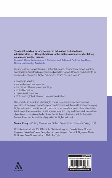 Trevor Kerry draws together contributions from leading academics in the field based in Europe, Canada and Australia to examine key themes in higher education, including: . academic freedom . leadership and management . the nature of learning and teaching . ethical behaviour . curriculum innovation . attitudes to globalization and internationalization The contributors explore what might constitute effective higher education provision, drawing on innovative practice from around the world and encouraging higher education practitioners to become more analytical and critical about their institutions, about their own roles, and about the ways in which they and their work serve their client-base. In so doing the book confronts the contextual conflicts that arise from political, social and fiscal agendas for higher education.