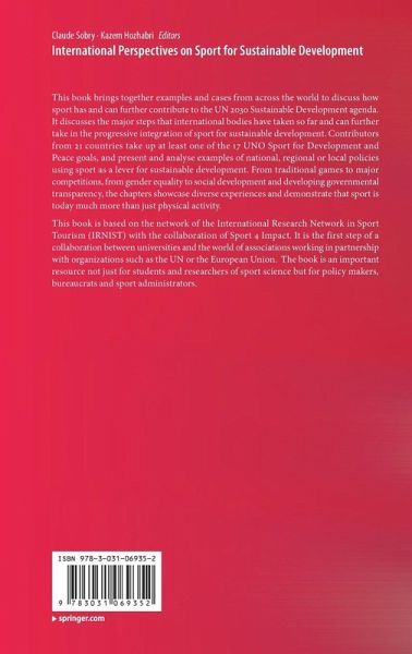 This book brings together examples and cases from across the world to discuss how sport has and can further contribute to the UN 2030 Sustainable Development agenda. It discusses the major steps that international bodies have taken so far and can further take in the progressive integration of sport for sustainable development. Contributors from 21 countries take up at least one of the 17 UNO Sport for Development and Peace goals, and present and analyse examples of national, regional or local policies using sport as a lever for sustainable development. From traditional games to major competitions, from gender equality to social development and developing governmental transparency, the chapters showcase diverse experiences and demonstrate that sport is today much more than just physical activity.