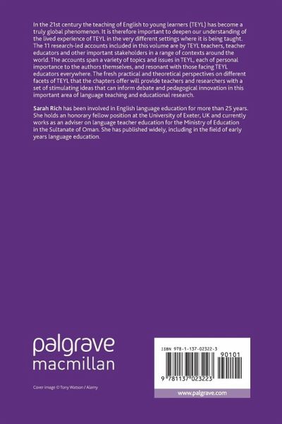 "This Palgrave book provides descriptions and analysis of various researchled projects from Teaching English to Young Learners (TEYL) educators working mainly with primary school students in different countries throughout the world. ... Sarah Rich emphasizes the idea of taking advantage of these worldwide experiences, which ... will surely help teachers and educators from all schools to tackle our work in an ever-changing and globalised world." (Gloria Gallego Jiménez, Estudios Sobre Educación, Vol. 31, 2016)