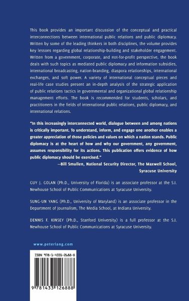 Contents: Guy J. Golan/Sung-Un Yang: Introduction: The Integrated Public Diplomacy Perspective Foundations - Michael D. Schneider: U.S. Public Diplomacy Since 9-11: The Challenges of Integration - Olga Zatepilina-Monacell: Public Diplomacy in NGOs - Sarabdeep K. Kochhar/Juan-Carlos Molleda: The Evolving Links Between International Public Relations and Corporate Diplomacy - Nancy Snow: Public Diplomacy and Public Relations: Will the Twain Ever Meet? - Eyun-Jung Ki: Application of Relationship Management to Public Diplomacy - Jangyul Robert Kim: Application of Issues and Crisis Management to Public Diplomacy - Kelly Vibber/Jeong-Nam Kim: Diplomacy in a Globalized World: Focusing Internally to Build Relationships Externally - Kristi S. Gilmore/Richard D. Waters: Stewardship and the Political Process: Improving the Political Party-Constituent Relationship Through Public Relations - Hua Jiang: Ethical Visions for Public Diplomacy as International Public Relations - Nation Brands and Country Reputation - Simon Anholt: Public Diplomacy and Competitive Identity: Where's the Link? - Kineta Hung: Repairing the "Made-in-China" Image in the U.S. and U.K.: Effects of Government-supported Advertising - Colleen Connolly-Ahern/Lian Ma: Taking It to the Streets: The Evolving Use of VNRs as a Public Diplomacy Tool in the Digital Age - Shawn Powers/Tal Samuel-Azran: Conceptualizing International Broadcasting as Information Intervention - Bruce W. Dayton/Dennis F. Kinsey: Contextual Meaning - Vanessa Bravo: The Importance of Diaspora Communities as Key Publics for National Governments Around the World - Aimei Yang: Soft Power, NGOs and Virtual Communication Networks: New Strategies and Directions for Public Diplomacy - Juyan Zhang/Shahira Fahm: Live Tweeting at Work: The Use of Social Media in Public Diplomacy - Jisk a Englebert/Jacob Groshek: Relations of Populism: An International Perspective of Public Diplomacy Trends - Margaret G. Hermann: Presidents, Approval Ratings, and Standing: Assessing Leaders' Reputations - James Pamment: A Contextualized Interpretation of PD Evaluation - Brenda Wrigley: Tenets of Diversity: Building a Strategy for Social Justice in Public Diplomacy - Mohan J. Dutta: Public Diplomacy, Public Relations, and the Middle East: A Culture-Centered Approach to Power in Global Contexts - Conclusion: Guy J. Golan: An Integrated Approach to Public Diplomacy.