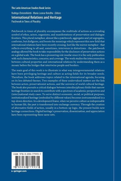 Patchwork in times of plurality encompasses the multitude of actions as a revealing symbol of ethos, actors, organisms, and manifestations of preservation and dialogue frontiers. This plural metaphor, almost like a patchwork, aggregates and yet segregates, conforms, but disfigures, and boosts the meanings which represent this new field that international relations have been recently crossing. Just like the mirror metaphor - that reflects everything to all and, sometimes, intervenes in distortions - the patchwork analogy allowed the book to take responsibility for the disclosure of preservation…mehr