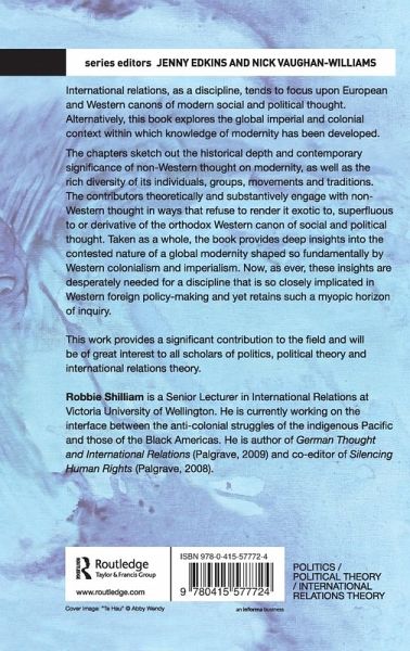 International Relations, as a discipline, tends to focus upon European and Western canons of modern social and political thought. Alternatively, this book explores the global imperial and colonial context within which knowledge of modernity has been developed. The chapters sketch out the historical depth and contemporary significance of non-Western thought on modernity, as well as the rich diversity of its individuals, groups, movements and traditions. The contributors theoretically and substantively engage with non-Western thought in ways that refuse to render it exotic to, superfluous to or derivative of the orthodox Western canon of social and political thought. Taken as a whole, the book provides deep insights into the contested nature of a global modernity shaped so fundamentally by Western colonialism and imperialism. Now, as ever, these insights are desperately needed for a discipline that is so closely implicated in Western foreign policy making and yet retains such a myopic horizon of inquiry. This work provides a significant contribution to the field and will be of great interest to all scholars of politics, political theory and international relations theory.