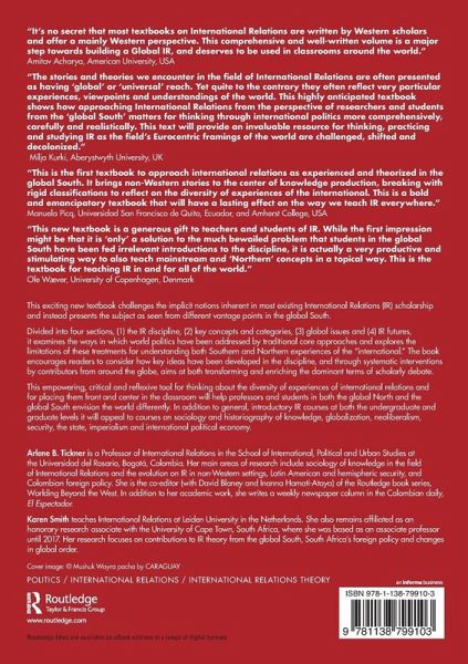 "This is the first textbook to approach international relations as experienced and theorized in the global South. It brings non-Western stories to the center of knowledge production, breaking with rigid classifications to reflect on the diversity of experiences of the international. This is a bold and emancipatory textbook that will have a lasting effect on the way we teach IR everywhere." - Manuela Picq, Universidad San Francisco de Quito, Ecuador, and Amherst College, USA